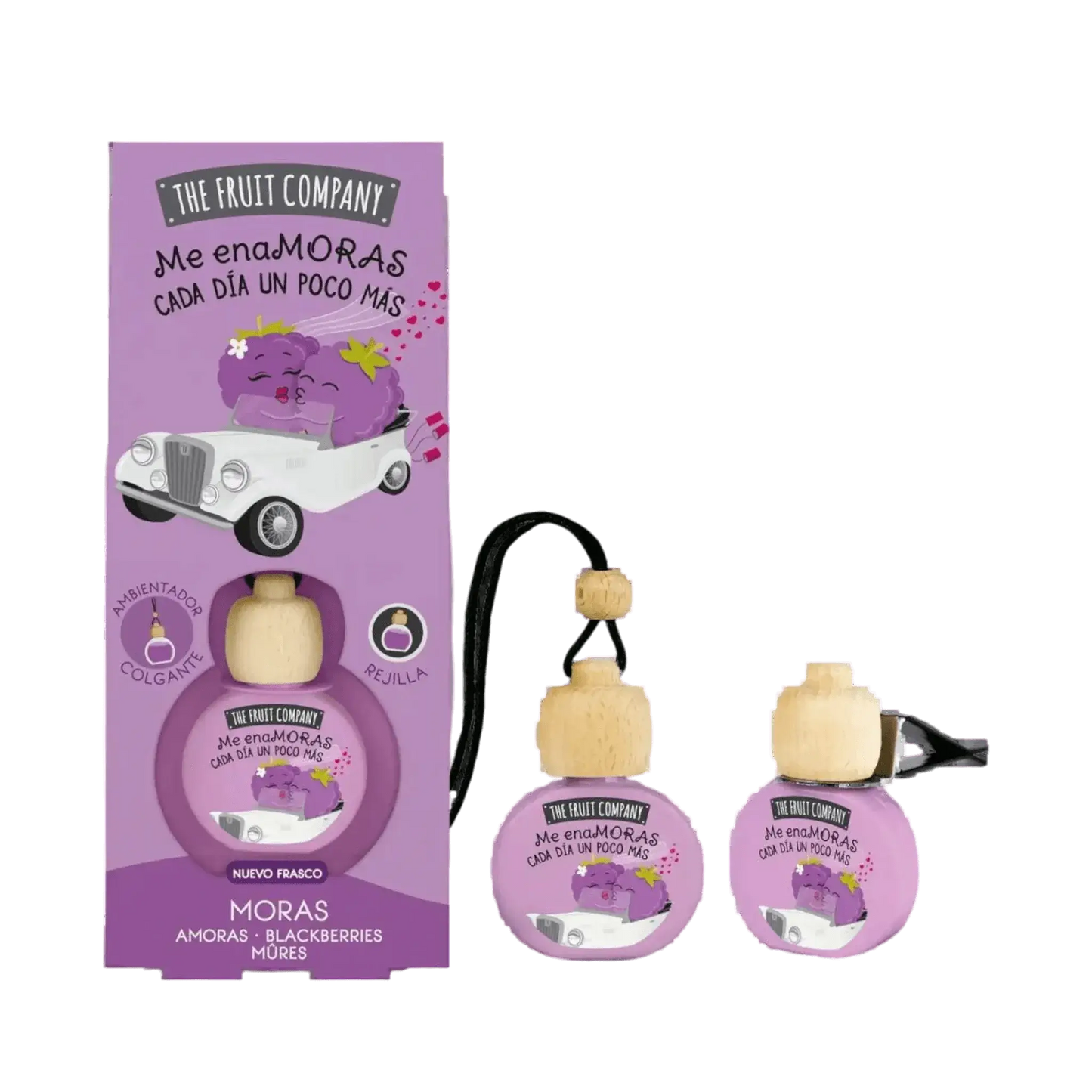 Ambientador para coches con aroma a Moras y extractos naturales con 2 usos: