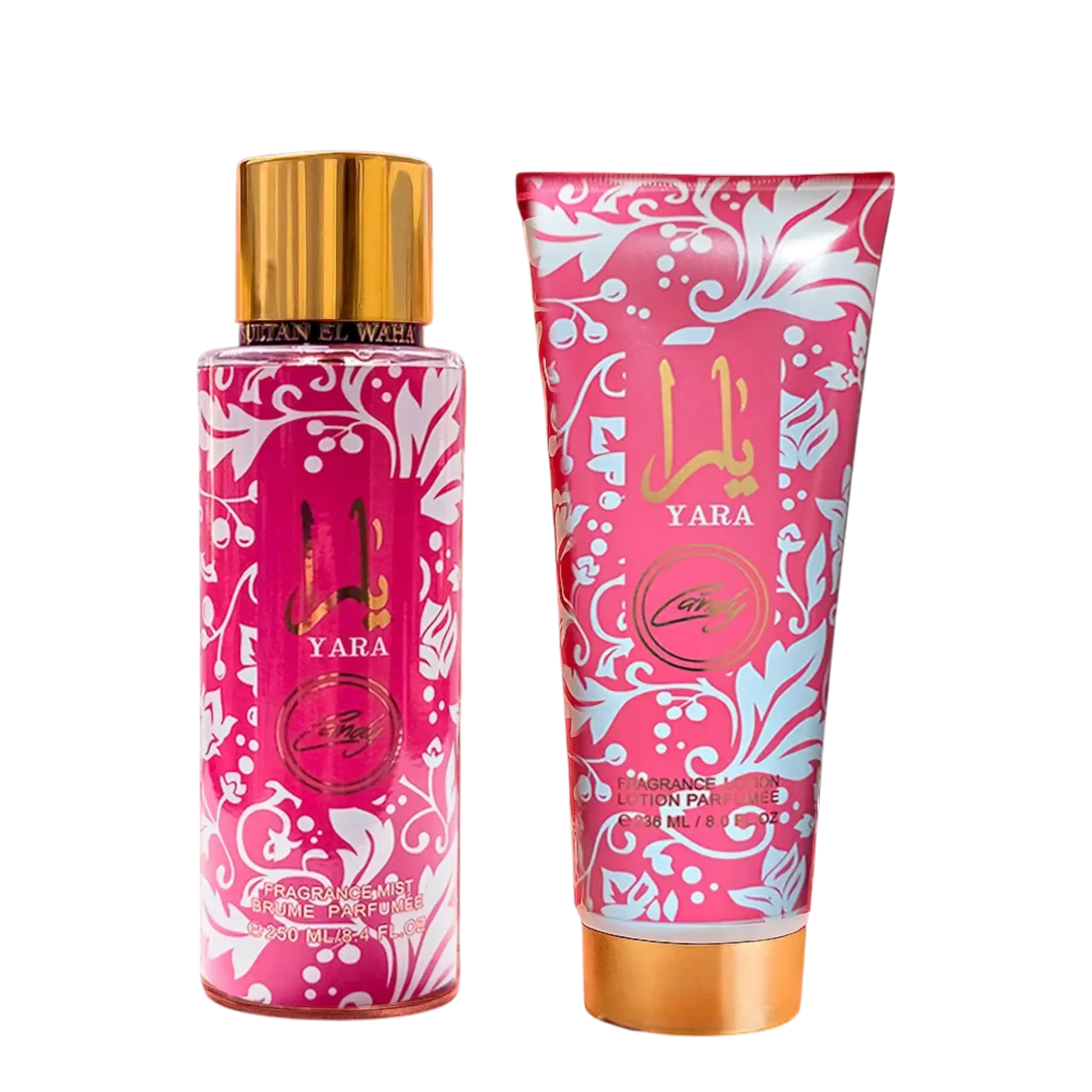 O Kit de Presente Yara Candy da Sultan El Waha é perfeito para quem gosta de fragrâncias doces, femininas e envolventes. Traz uma bruma perfumada e um creme corporal hidratante, criando um ritual simples que deixa a pele suave, luminosa e delicadamente perfumada.